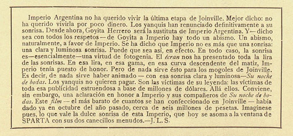 Imperio Argentina”, reafirmando los desacuerdos entre la primera actriz y la empresa cinematográfica.